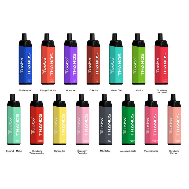 Vape Yuoto Thanos устранимое приходит наполненный пре с 14ml 50mg шелковистой ровной e-жидкости соли никотина. Оно отличает перезаряжаемые батареей 650mAh и поставляет приблизительно 5000 слоек в индивидуальный прибор. Славно мочь воздержаться все подготовки и carting вокруг различных продуктов когда вы можете просто принести это вместе с вами и забыть о всех остатках. Идеальный ergonomically конструированный мундштук был сформирован идеального для приспособления вашего рта, обеспечивая удобную тягу.